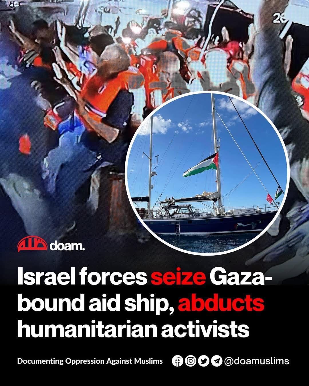Handala activists, including Frank Romano, intercepted by Israeli forces. July 26, 2025