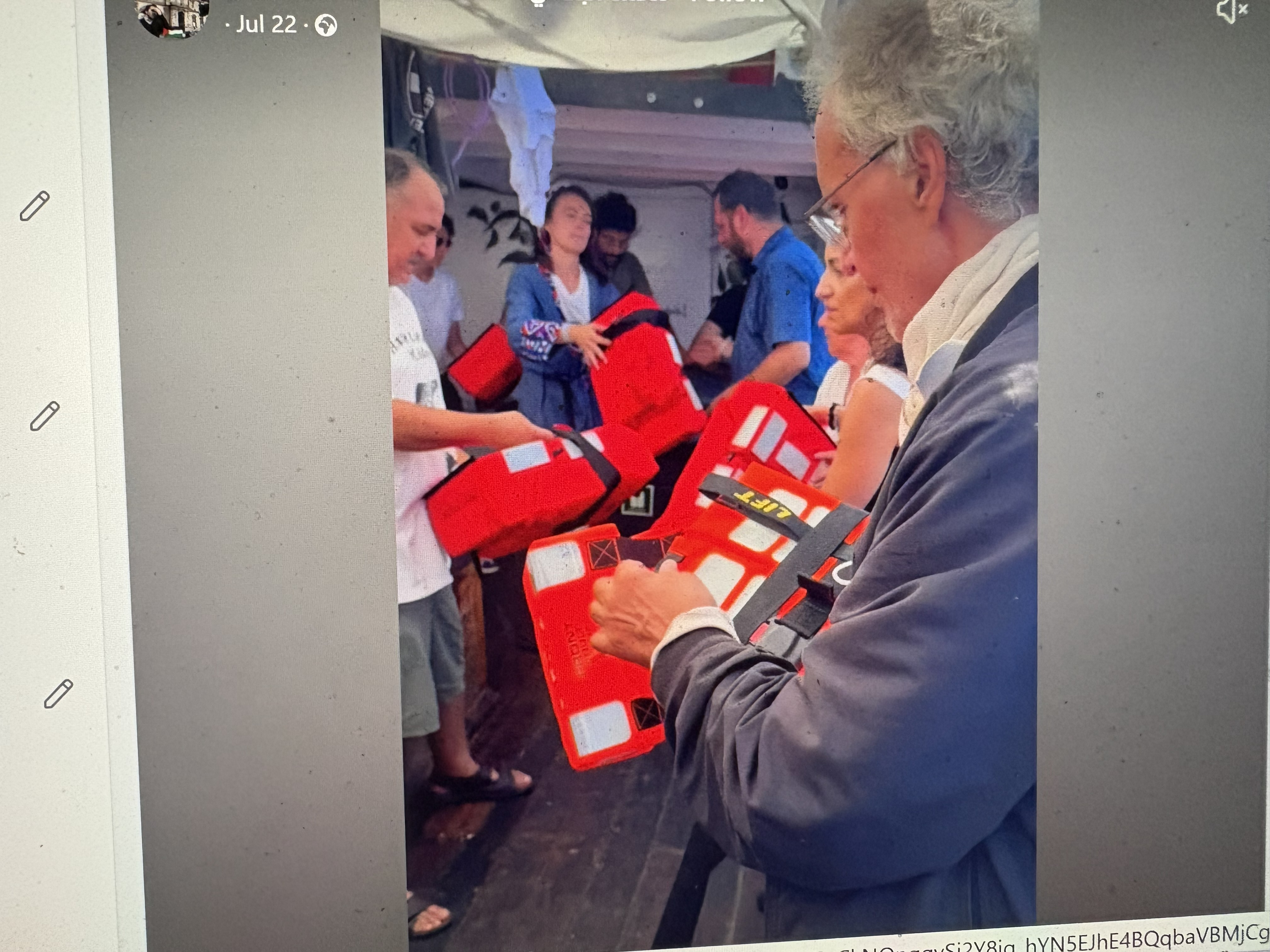 On September 2, 2025, Frank Romano and fellow activists conducted training on the Handala vessel, preparing for potential interception by Israeli forces. The training session focused on ensuring that all participants were equipped with the necessary skills and strategies to navigate any challenges encountered during their mission to break the blockade and deliver humanitarian aid to Gaza.